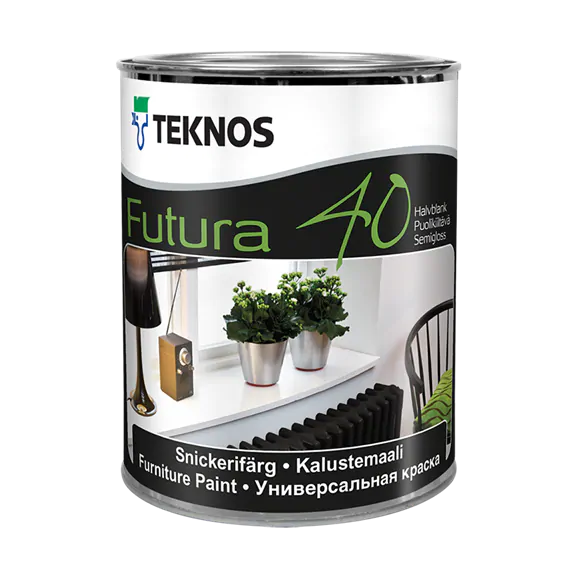 Tiksotroopne poolläikiv uretaanalküüdvärv. FUTURA 40 sobib pinnavärviks puit- ja krunditud metallpindadele sise- ja välisinventarile. Väldi tumedate toonide kasutamist välistingimustes.