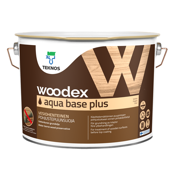 WOODEX AQUA BASE PLUS on kasutusvalmis vesilahustuv puidukaitsekrunt väljas asuvate puitpindade kruntimiseks enne pinnatöötlust. WOODEX AQUA BASE PLUS on mõeldud tavatarbijale ja professionaalile puidu kaitsmiseks toonimuutuste, mädaniku ja sinetuse vastu. WOODEX AQUA BASE PLUS kaitseb pidevalt ilmastiku või niiskuse käes olevat puitu. Ei soovitata maapinnaga kokkupuutes või pidevas mageda ja soolase veega kokkupuutes olevatele puiduosadele.